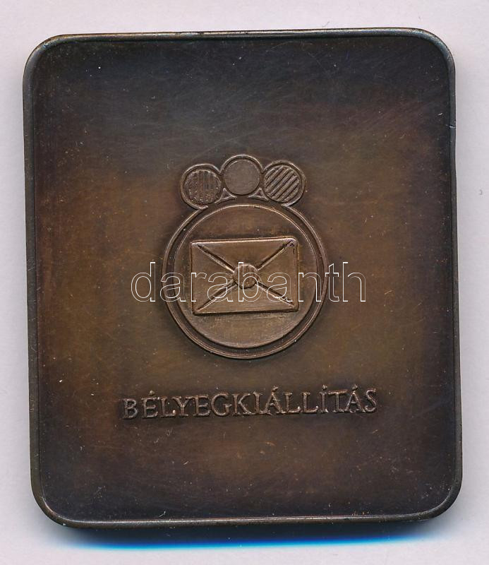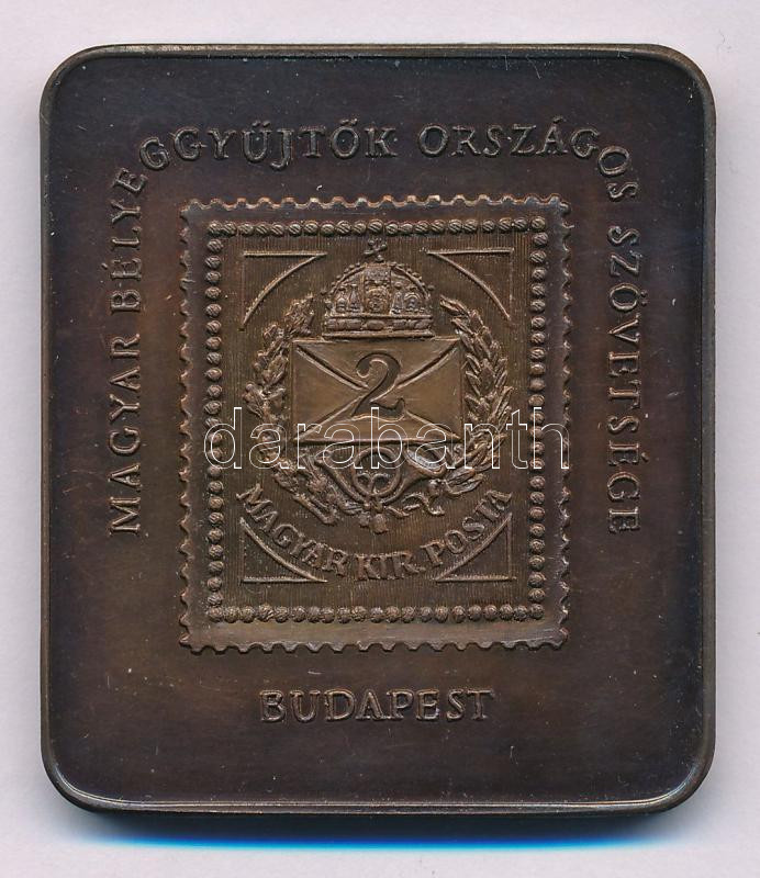 1991. "Magyar Bélyeggyűjtők Országos Szövetsége - Budapest / Bélyegkiállítás" 2kr-os, levélboríték rajzú bélyeget ábrázoló bronz plakett (40x46mm) T:AU patina