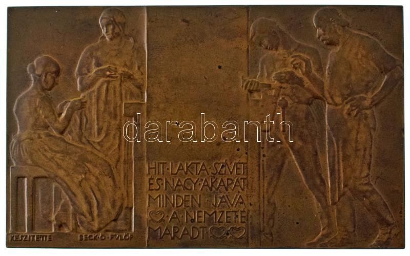 Hungary ~1905. "Felejthetetlen elnökének - Ráth György 1828-1905 - A Magyar Iparművészeti Társulat / Hit lakta szívét és nagy akarat, minden java a nemzeté maradt" double-sided bronze plaque. Sign.: Fülöp Beck Ötvös (54x87mm) C:AU