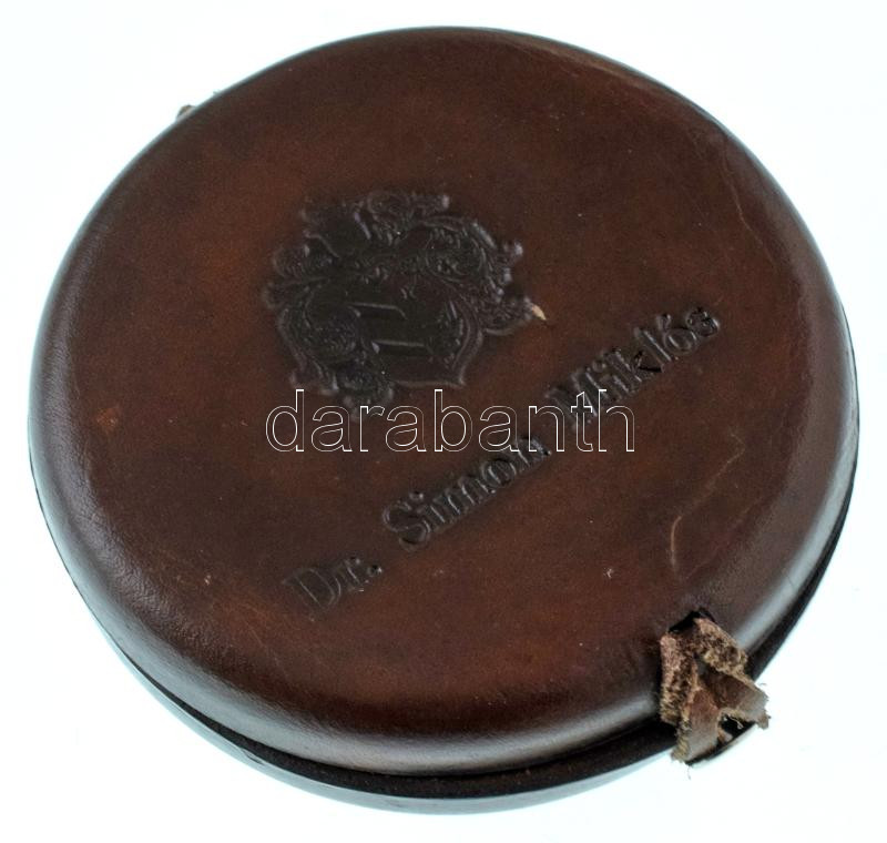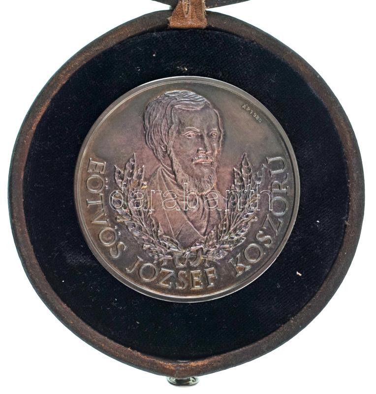 Bognár György (1944-) 1994. "Eötvös József koszorú / Magyar Tudományos Akadémia 1825." peremen "Simon Miklós 1994." gravírozással. Jelzett Ag díjplakett, bőr dísztokban (117,45g/0.925/60mm) T:AU, patina