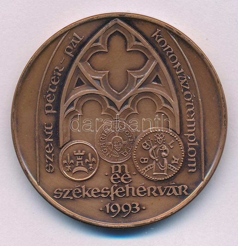Fritz Mihály (1947-) / Szabó Géza (1939-) 1993. "MÉE Székesfehérvár Szent Péter-Pál koronázótemplom - második honalapítónk IV. Béla" bronz emlékérem (42,5mm) T:AU patina