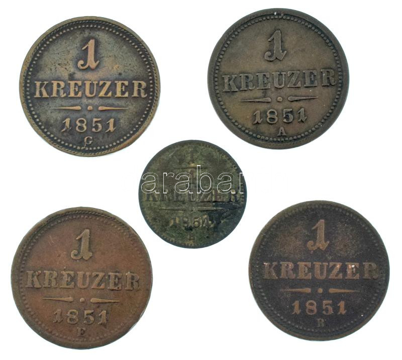 1851. 1/4kr Cu + 1kr Cu (4xklf) T:VF-F