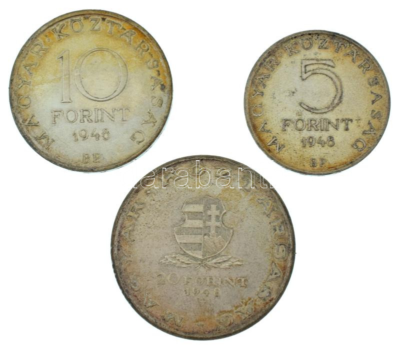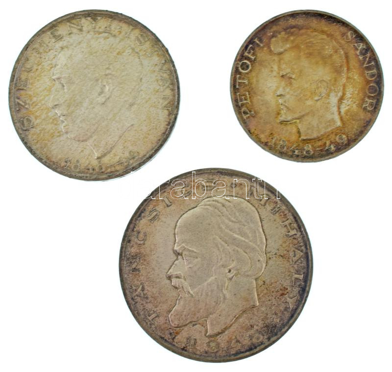 1948. 5Ft Ag "Petőfi" + 10Ft Ag "Széchenyi" + 20Ft Ag "Táncsics", "Szabadságharc sor" T:AU,XF, patina