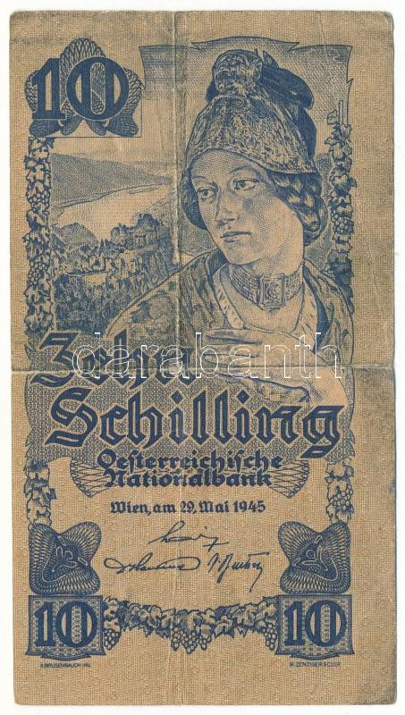 Austr... https://www.darabanth.com/de/514-Auktion-Philatelie-Postkarten-Numismatik-Kunstwerke-Bucher-Schreibwaren-Schmuck/515.0/Numismatik/Weltweit-Banknoten~1316/Ausztria-1945-10Sch-I-kiadas-1195-22895-TF-VG3Cbr-3E-Austria-1945-10-Schilling-1st-issue-~II3461949