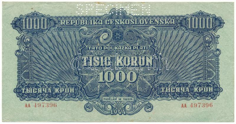 Csehszlovákia 1944. 1000K "AA 497396", "SPECIMEN (MINTA... https://www.darabanth.com/de/514-Auktion-Philatelie-Postkarten-Numismatik-Kunstwerke-Bucher-Schreibwaren-Schmuck/515.0/Numismatik/Weltweit-Banknoten~1316/Csehszlovakia-1944-1000K-AA-497396-SPECIMEN-MINTA-perforacioval-TVF-F-szep-papir-Czech~II3481574