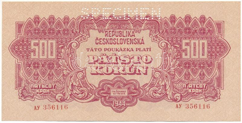 Csehszlovákia 1944. 500K "AY 356116", "SPECIMEN (MINTA)... https://www.darabanth.com/de/514-Auktion-Philatelie-Postkarten-Numismatik-Kunstwerke-Bucher-Schreibwaren-Schmuck/515.0/Numismatik/Weltweit-Banknoten~1316/Csehszlovakia-1944-500K-AY-356116-SPECIMEN-3Cstrong3EMINTA3Cstrong3E-perforacioval-TAU3Cbr-~II3480054