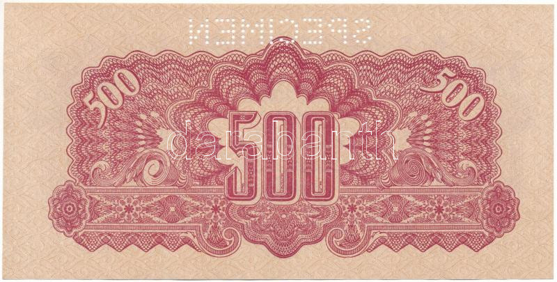 Beschreibung: Csehszlovákia 1944. 500K "AY 356116", "SPECIMEN (MINTA )" perforációval T:AU