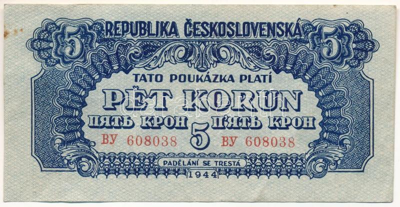 Csehszlovákia 1944. 5K "BY 608038" T:F