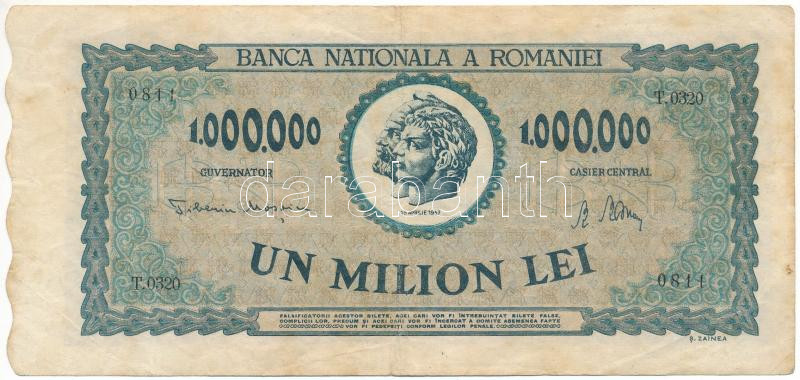 Romania 1947. 1.000.000 Lei C... https://www.darabanth.com/de/514-Auktion-Philatelie-Postkarten-Numismatik-Kunstwerke-Bucher-Schreibwaren-Schmuck/515.0/Numismatik/Weltweit-Banknoten~1316/Romania-1947-1000000L-TF-eros-papir3Cbr-3E-Romania-1947-1000000-Lei-CF-strong-paper3Cbr-3E~II3478106