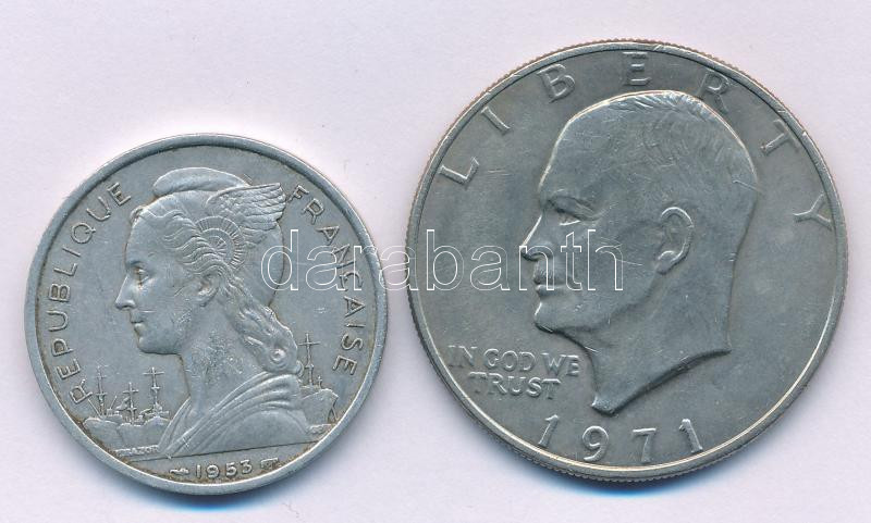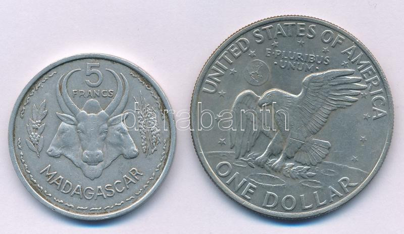 Amerikai Egyesült Államok 1971S 1$ Ag "Eisenhower" + Madagaszkár 1953. 5Fr Al T:AU-XF