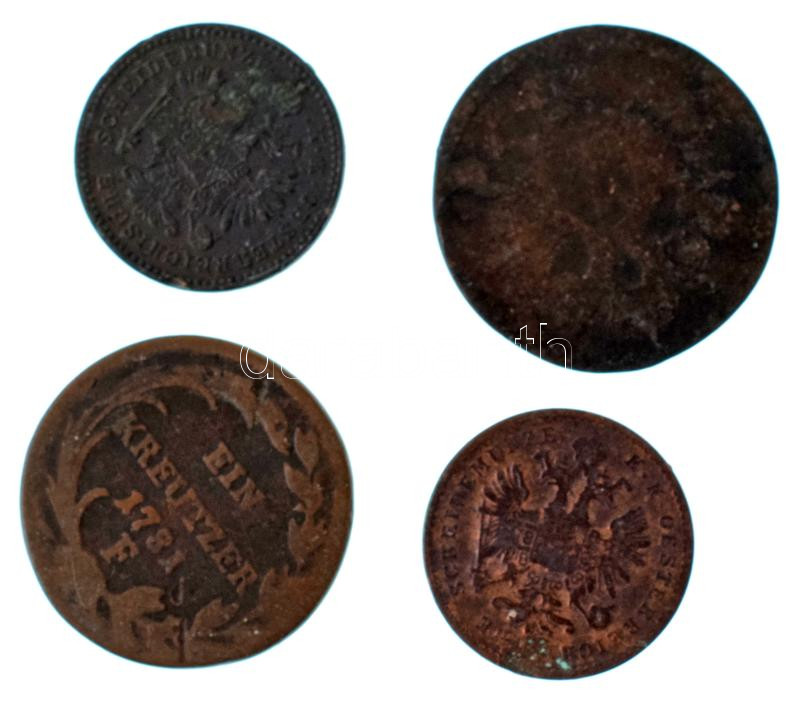 Ausztria 1781F 1kr Cu "II. József" Hall + 1800C 1kr Cu "I. Ferenc" Prága + 1859M 1kr Cu Milánó + 1858A 1kr Cu T:F