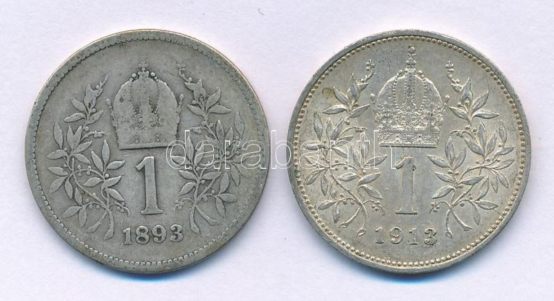 Beschreibung: Ausztria 1893. 1K Ag "Ferenc József" + 1913. 1K Ag "Ferenc József" T:F,XF patina