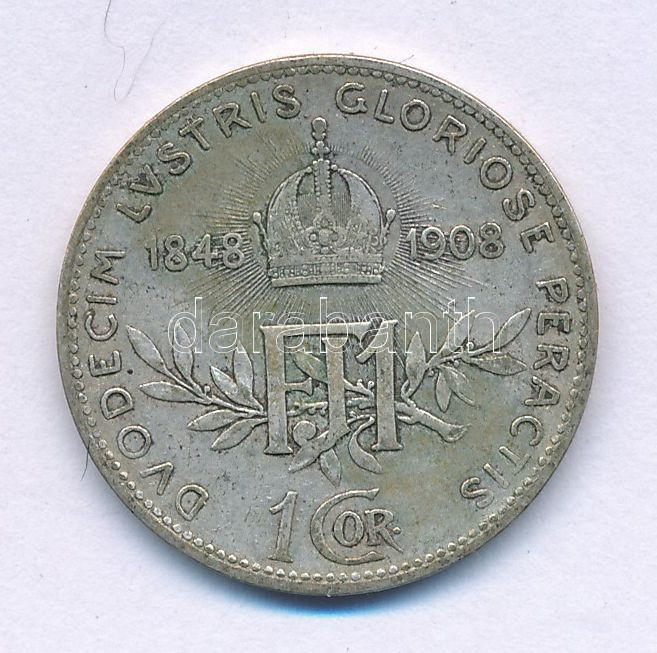 ... https://www.darabanth.com/de/514-Auktion-Philatelie-Postkarten-Numismatik-Kunstwerke-Bucher-Schreibwaren-Schmuck/515.0/Numismatik/Weltweit-Munzen~1317/Ausztria-1908-1K-Ag-Ferenc-Jozsef-Jubileum-TVF-patina3Cbr-3E-Austria-1908-1-Corona-Ag-Franz~II3475747