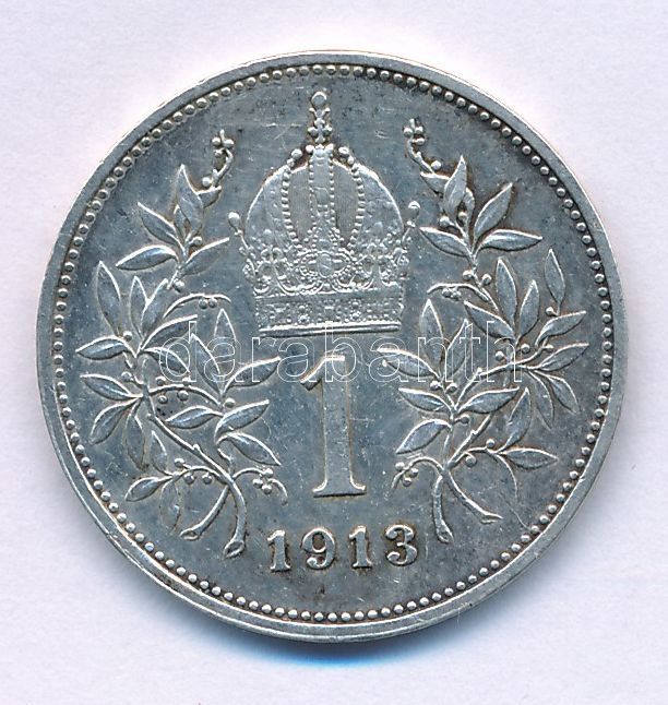 Austria 1913. 1 C... https://www.darabanth.com/de/514-Auktion-Philatelie-Postkarten-Numismatik-Kunstwerke-Bucher-Schreibwaren-Schmuck/515.0/Numismatik/Weltweit-Munzen~1317/Ausztria-1913-1K-Ag-Ferenc-Jozsef-TXF3Cbr-3E-Austria-1913-1-Corona-Ag-Franz-Joseph-CXF3Cbr-~II3458908