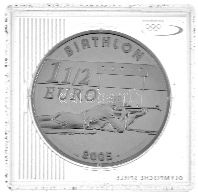 Franciaország 2005. 1 1/2E Ag "Torinói Téli Olimpia 2006 - Biatlon" kapszulában T:PP patina, kis karc / France 2005. 1 1/2 Euro Ag "Olympic Winter Games in Turin in 2006 - Biathlon" in capsule C:PP patina, small scratch Krause KM#1423