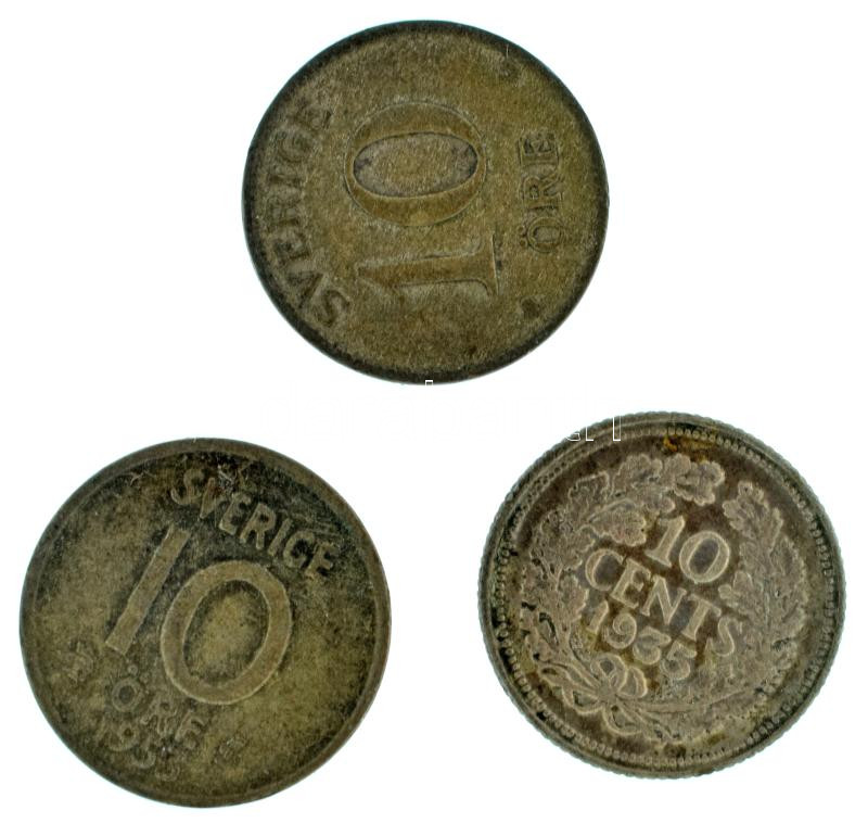 Hollandia 1935. 10c Ag "Vilma" + Svédország 1935. 10ö billon + 1953. 10ö billon T:VF patina
