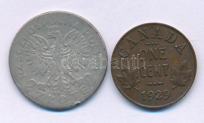 Kanada 1929. 1c "V. György" + Lengyelország 1934. 2Zl Ag "Polonia" T:VF-F