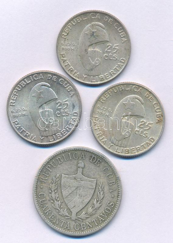 Cuba 1915. 40 Centavos Ag + 1953. 25 Centavos Ag "Centennial - Birth of Jose Marti" (3x) C:XF,VF patina