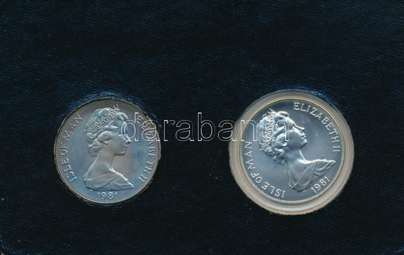 Man sziget 1981. 1C (2xklf) Ag + Cu-Ni "Királyi esküvő" érmepár műanyag tokban, német nyelvű ismertetővel T:AU, kis patina, fólia hiba, Ag: PP kapszulában