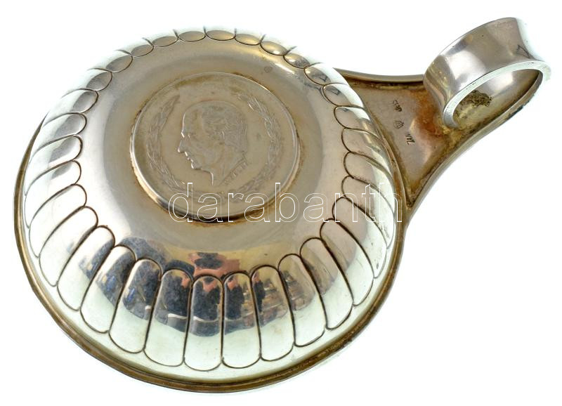 Mexico 1953. 5 Pesos Ag coin, set in Ag "glass", with the maker's mark of the silversmith "JMS" (Jose Marmolejo) of Mexico City (br.170.26g/~140x100x30mm) C:XF