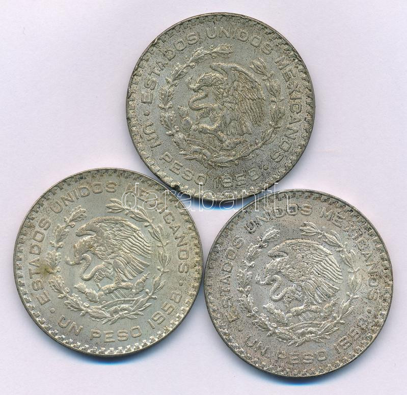 Mexikó 1958. 1P Ag "Jose Morelos" (3x) T:XF,VF patina, ph.