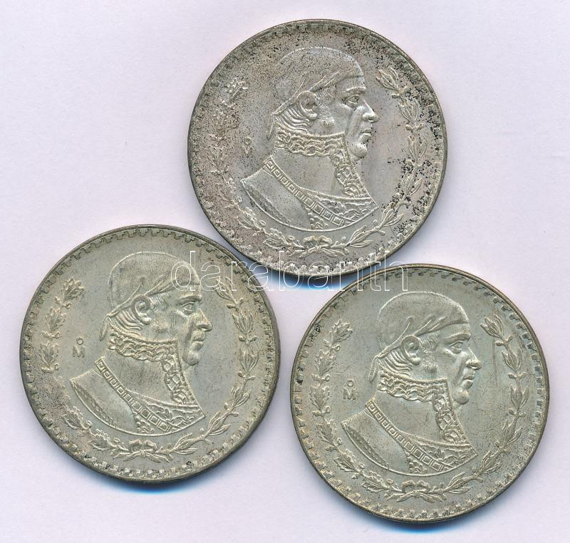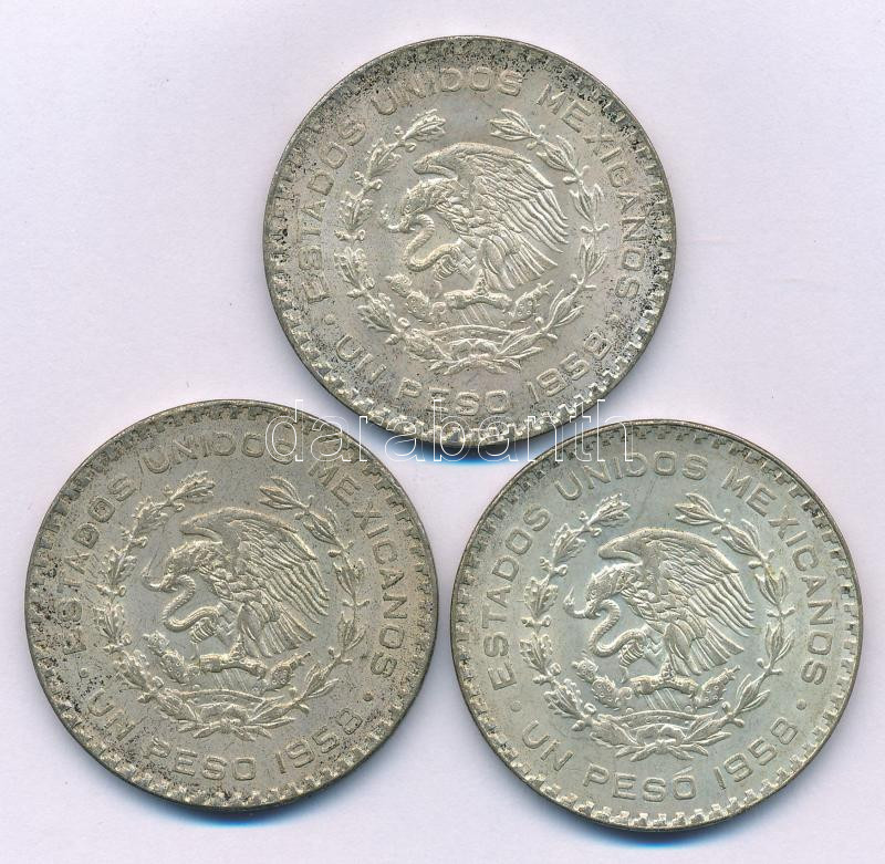 Mexico 1958. 1 Peso Ag "Jose Morelos" (3x) C:XF,VF patina