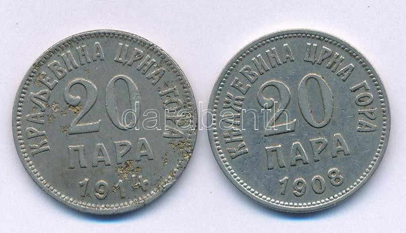Montenegro 1908. 20 Para Ni "Nicholas I" + 1914. 20 Para Ni "Nicholas I" C:XF small edge error