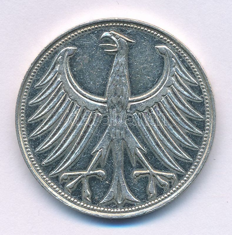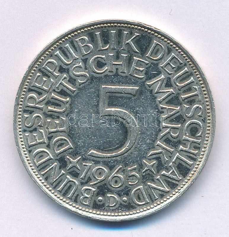 Német Szövetségi Köztársaság 1965D 5M Ag kapszulában, tanúsítvánnyal. T:AU
