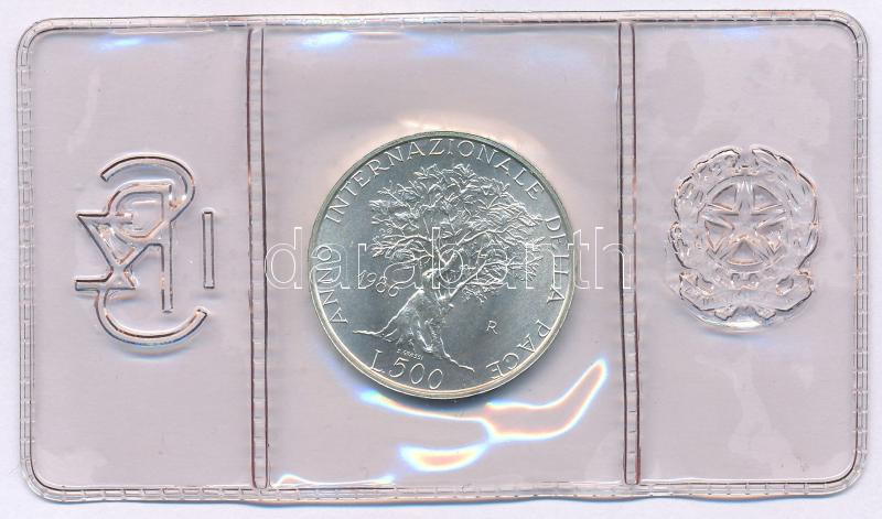Olaszország 1986R 500L Ag "A béke nemzetközi éve" eredeti lezárt fóliacsomagolásban és műanyag dísztokban, tanúsítvánnyal T:UNC