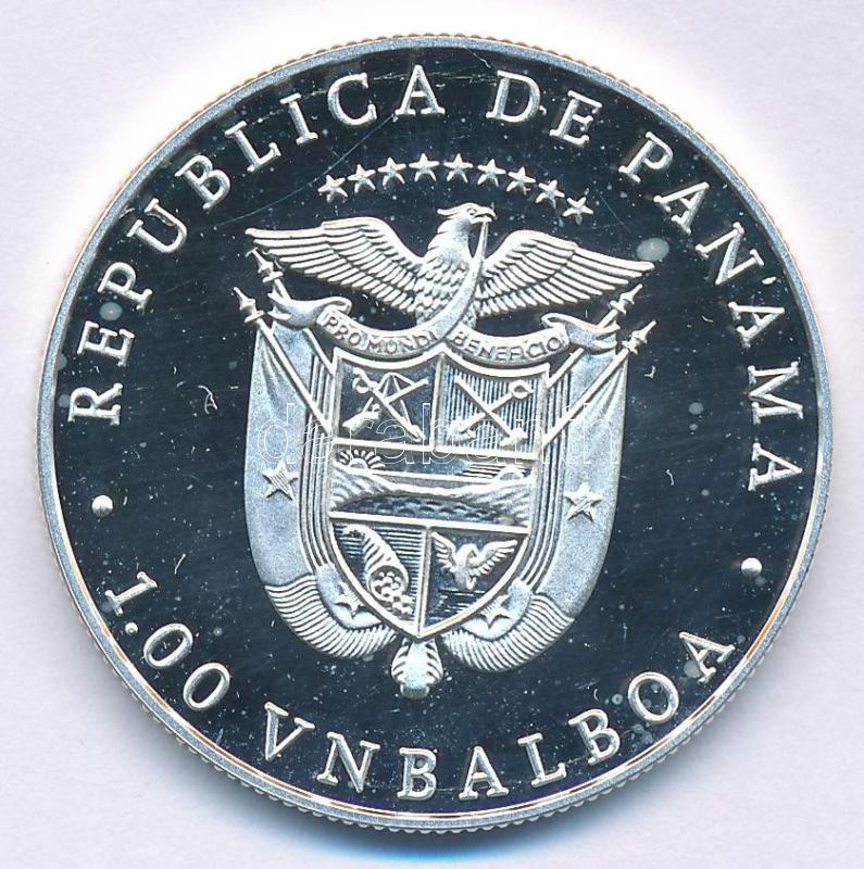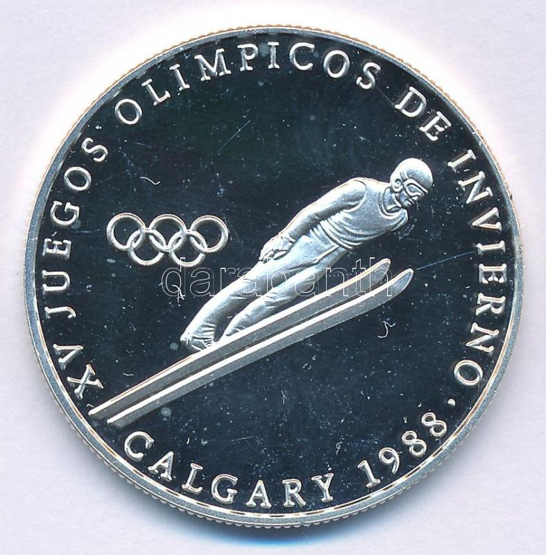 Panama 1988. 1B Ag "Téli Olimpia 1988 Calgary - Síugró" forgalomba nem került fantázia emlékérme T:PP kis karc Panama 1988. 1 Balboa Ag "Winter Olympics 1988 Calgary - Ski jumper" non-circulating commemorative fantasy coin C:PP small scratch Krause X#M1a