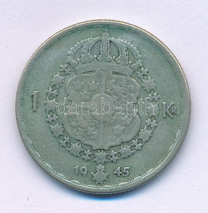 Sweden 1945G 1 Krona billon "Gustaf V" C:VF,F