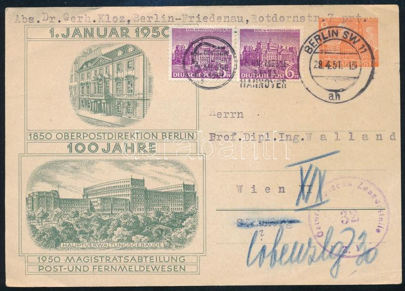 1951 Díjkiegészített díjjegyes levelezőlap / PS-card with additional f... https://www.darabanth.com/de/514-Auktion-Philatelie-Postkarten-Numismatik-Kunstwerke-Bucher-Schreibwaren-Schmuck/515.0/Philatelie-und-Postgeschichte-Ausland/Deutschland-Berlin~470/1951-Dijkiegeszitett-dijjegyes-levelezolap-PS-card-with-additional-franking~II3413401