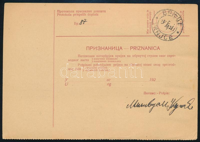 1921 Teljes csomagszállító 5 db bélyeggel / Complete parcel card with ... https://www.darabanth.com/de/514-Auktion-Philatelie-Postkarten-Numismatik-Kunstwerke-Bucher-Schreibwaren-Schmuck/515.0/Philatelie-und-Postgeschichte-Ausland/Jugoslawien~408/1921-Teljes-csomagszallito-5-db-belyeggel-Complete-parcel-card-with-5-stamps~II3413473