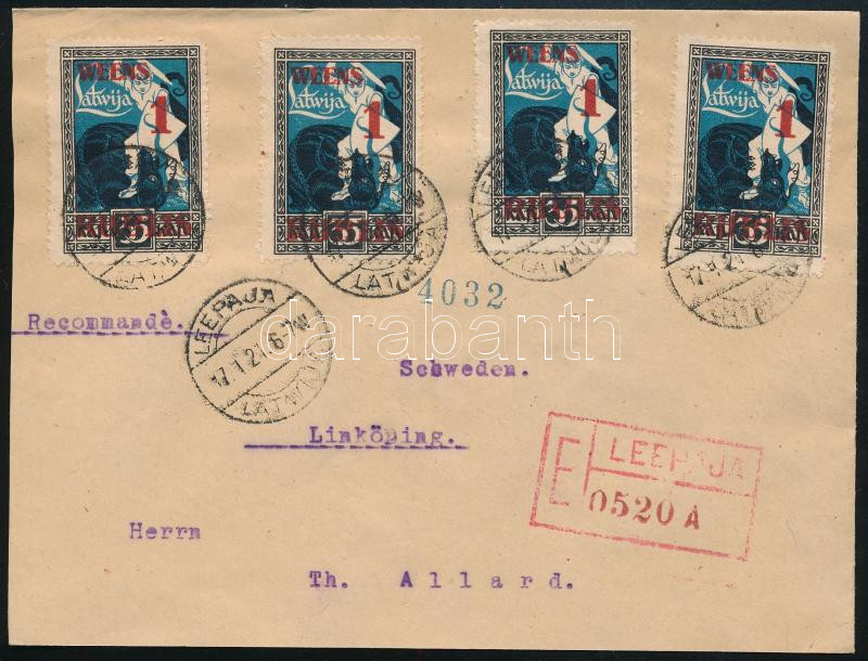 1921 Ajánlott levél / Registered cover to Sweden https://www.darabanth.com/de/514-Auktion-Philatelie-Postkarten-Numismatik-Kunstwerke-Bucher-Schreibwaren-Schmuck/515.0/Philatelie-und-Postgeschichte-Ausland/Litauen~438/1921-Ajanlott-level-Registered-cover-to-Sweden~II3436314