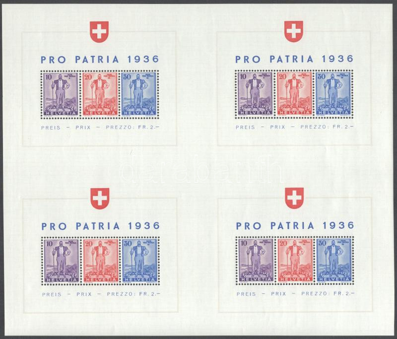 1936 Mi block 2, 4 blokkot tartalmazó teljes ívben / complete sheet RR... https://www.darabanth.com/de/514-Auktion-Philatelie-Postkarten-Numismatik-Kunstwerke-Bucher-Schreibwaren-Schmuck/515.0/Philatelie-und-Postgeschichte-Ausland/Schweiz~526/1936-Mi-block-2-4-blokkot-tartalmazo-teljes-ivben-complete-sheet-RRR-Mi-EUR-370-~II3445755