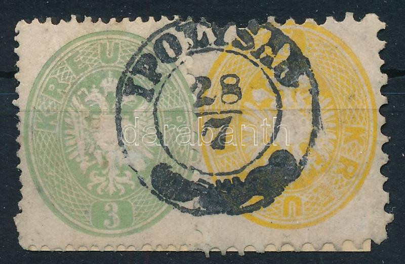 Beschreibung: 1863/1864 3kr + 2kr kivágáson / on cutting "IPOLYSÁG"