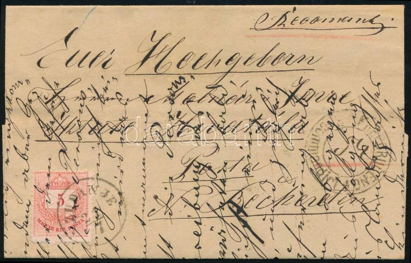 1875 3 x 5kr ajánlott levélen "ZUPANJE" (hátoldali bélyegek ... https://www.darabanth.com/de/514-Auktion-Philatelie-Postkarten-Numismatik-Kunstwerke-Bucher-Schreibwaren-Schmuck/515.0/Philatelie-und-Postgeschichte-Ungarn/Ausgaben-1874-1899~35/1875-3-x-5kr-ajanlott-levelen-ZUPANJE-hatoldali-belyegek-eltepve-2-stamps-torn-apart~II3479818