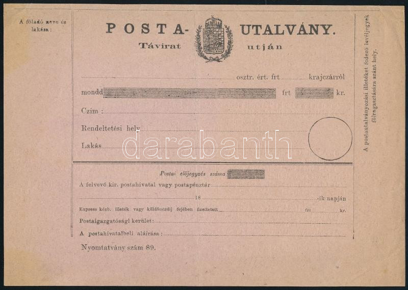 1875 Használatlan távirati magyar nyelvű fehér posta utalvány, a Phlia... https://www.darabanth.com/de/514-Auktion-Philatelie-Postkarten-Numismatik-Kunstwerke-Bucher-Schreibwaren-Schmuck/515.0/Philatelie-und-Postgeschichte-Ungarn/Ausgaben-1874-1899~35/1875-Hasznalatlan-tavirati-magyar-nyelvu-feher-posta-utalvany-a-Phliatelica-201-szerint-2b-~II3476473