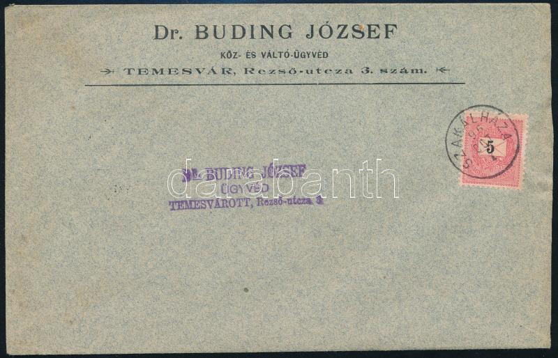 1896 5kr levélen "SZAKÁLHÁZA"