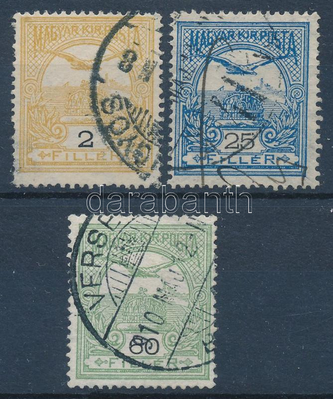 Beschreibung: 1908 Turul 2f, 25f és 60f "a" állású számvízjellel (34.000)
