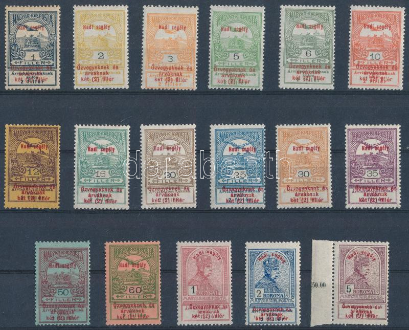 1914 Hadisegély próbanyomat sor, a 10f piros felülnyomással / Mi 145-1... https://www.darabanth.com/de/514-Auktion-Philatelie-Postkarten-Numismatik-Kunstwerke-Bucher-Schreibwaren-Schmuck/515.0/Philatelie-und-Postgeschichte-Ungarn/Ausgaben-1900-1919~38/1914-Hadisegely-probanyomat-sor-a-10f-piros-felulnyomassal-Mi-145-193-proof-set~II3116452