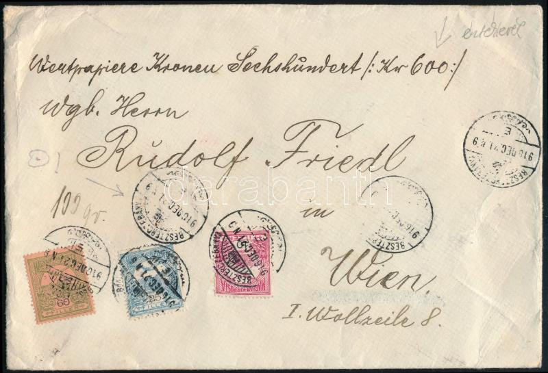 1916 Értéklevél 95f bérmentesítéssel / Insured cover with 95f franking... https://www.darabanth.com/de/514-Auktion-Philatelie-Postkarten-Numismatik-Kunstwerke-Bucher-Schreibwaren-Schmuck/515.0/Philatelie-und-Postgeschichte-Ungarn/Ausgaben-1900-1919~38/1916-Erteklevel-95f-bermentesitessel-Insured-cover-with-95f-franking-BESZTERCZEBANYA-Wi~II3439537