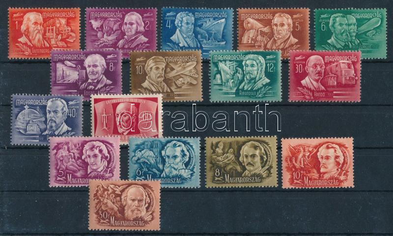Beschreibung: 1948 16 db bélyeg, közte az 1f, 2f, 6f, 30f, 60f halvány, felhős vízjellel vagy vízjel nélkül (Költők-írók ráncok / creases)