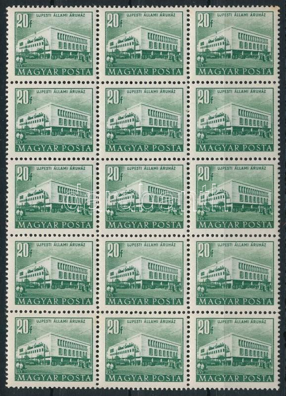 1953 Épületek (II.) 20f 15-ös tömb vízjel nélküli papíron (15.000) https://www.darabanth.com/de/514-Auktion-Philatelie-Postkarten-Numismatik-Kunstwerke-Bucher-Schreibwaren-Schmuck/515.0/Philatelie-und-Postgeschichte-Ungarn/Ausgaben-1946-1956~57/1953-Epuletek-II-20f-15-os-tomb-vizjel-nelkuli-papiron-15000~II3480235