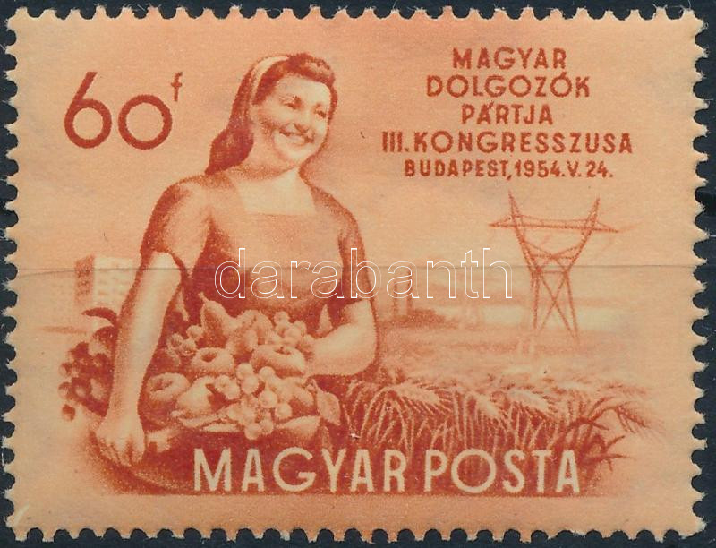 1954 MDP kongresszus számvízjellel (rozsda / stain) https://www.darabanth.com/de/514-Auktion-Philatelie-Postkarten-Numismatik-Kunstwerke-Bucher-Schreibwaren-Schmuck/515.0/Philatelie-und-Postgeschichte-Ungarn/Ausgaben-1946-1956~57/1954-MDP-kongresszus-szamvizjellel-rozsda-stain~II3221871