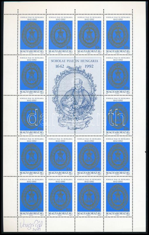 1992 Piarista rend teljes ív a tervező, Varga Pál aláírásával https://www.darabanth.com/de/514-Auktion-Philatelie-Postkarten-Numismatik-Kunstwerke-Bucher-Schreibwaren-Schmuck/515.0/Philatelie-und-Postgeschichte-Ungarn/Ausgaben-1990-1999~63/1992-Piarista-rend-teljes-iv-a-tervezo-Varga-Pal-alairasaval~II3481506