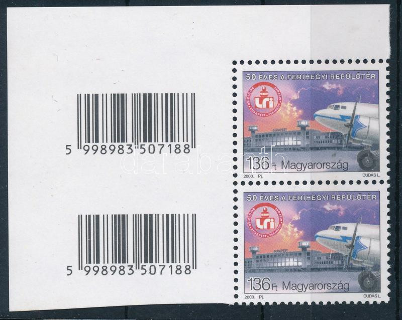 2000 50 éves a Ferihegyi repülőtér vonalkódos ívsarki pár (ujjlenyomat... https://www.darabanth.com/de/514-Auktion-Philatelie-Postkarten-Numismatik-Kunstwerke-Bucher-Schreibwaren-Schmuck/515.0/Philatelie-und-Postgeschichte-Ungarn/Ausgaben-2000-2009~64/2000-50-eves-a-Ferihegyi-repuloter-vonalkodos-ivsarki-par-ujjlenyomatok-fingerprints~II3429195