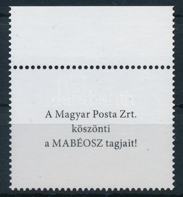 Beschreibung: 2018 Bélyegnap ívszéli bélyeg, hátoldalán "A Magyar Posta Zrt. köszönti a MABÉOSZ tagjait!" felirattal