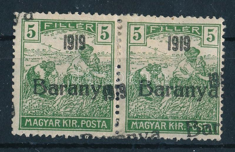 Baranya I. 1919 Arató 5f pár kettős felülnyomással, Bodor vizsgálójell... https://www.darabanth.com/de/514-Auktion-Philatelie-Postkarten-Numismatik-Kunstwerke-Bucher-Schreibwaren-Schmuck/515.0/Philatelie-und-Postgeschichte-Ungarn/Besetzung-und-Lokalausgabe-1919-1921-mit-Obligo~50/Baranya-I-1919-Arato-5f-par-kettos-felulnyomassal-Bodor-vizsgalojellel~II3478763