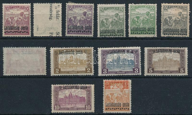 Beschreibung: Nyugat-Magyarország III. 1921 12 klf bélyeg Bodor vizsgálójellel, közte hiányzó és elcsúszott hátoldali felülnyomás (10.400)