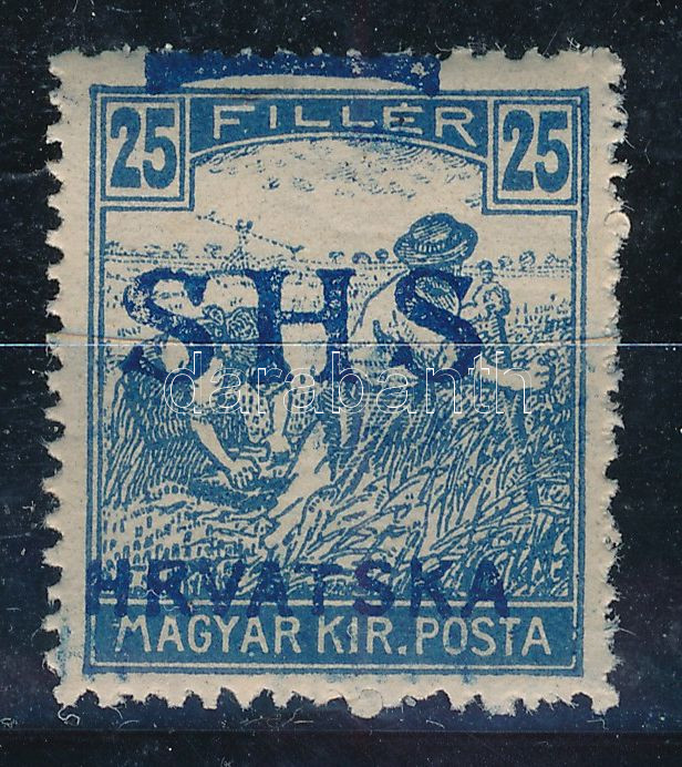 SHS 1918 Arató 25f a hátoldalra is került felülnyomat (elcsúszott)